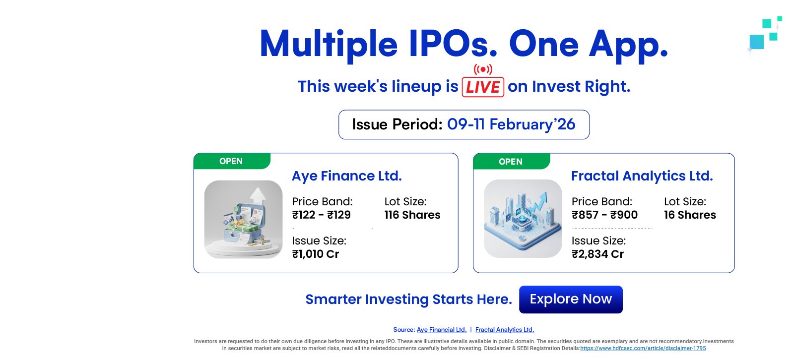 Do you want to invest in stocks? You don’t need to worry if you do, as we will help you identify the right stocks to meet your investment goals. More Stocks What are the top mutual fund schemes? Check out the top Mutual Fund schemes based on our Research Reckoner. More MF How will the markets behave today? Our daily morning viewpoint gives you a gist of what to expect from the trading day... Click Here Not sure what to invest in? Don’t worry, we’ve got you. With Basket Investing, professionals create and manage baskets for you. Learn More Do you want to know how listing gains perform and more on upcoming IPOs? Check out the details CLICK HEREWhy HDFC Securities?