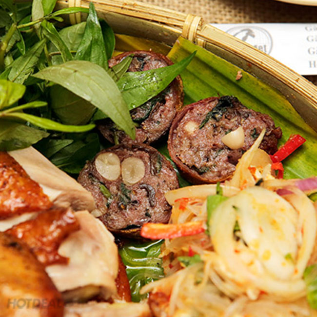 Ở combo Mẹt Gà quay, chỉ với nửa con gà có trọng lượng 0.8kg là đầu bếp nhà hàng có thể chế biến thành 07 món ăn đặc sắc khác nhau, mang đến sự mới mẻ và nhiều thú vị cho thực khách. Trong ấy, tất cả bộ phận của con gà đều được tận dụng triệt để thành nấu thành món ăn. Nếu như phần thịt thân con gà được dùng làm Gỏi gà, Gà quay hay Chả giò thì chân gà được ngâm sả tắc, lòng gà thì để xào mướp hoặc làm món Dồi gà. Trong đó, lạ miệng nhất phải kể đến món Gỏi gà sốt Thái, cũng phong cách xé trộn thịt gà cùng các loại hành, rau nhưng đầu bếp ở đây trộn cùng với một loại sốt pha chế theo kiểu Thái có vị chua chua, ngọt ngọt lại cay cay rất bắt miệng.