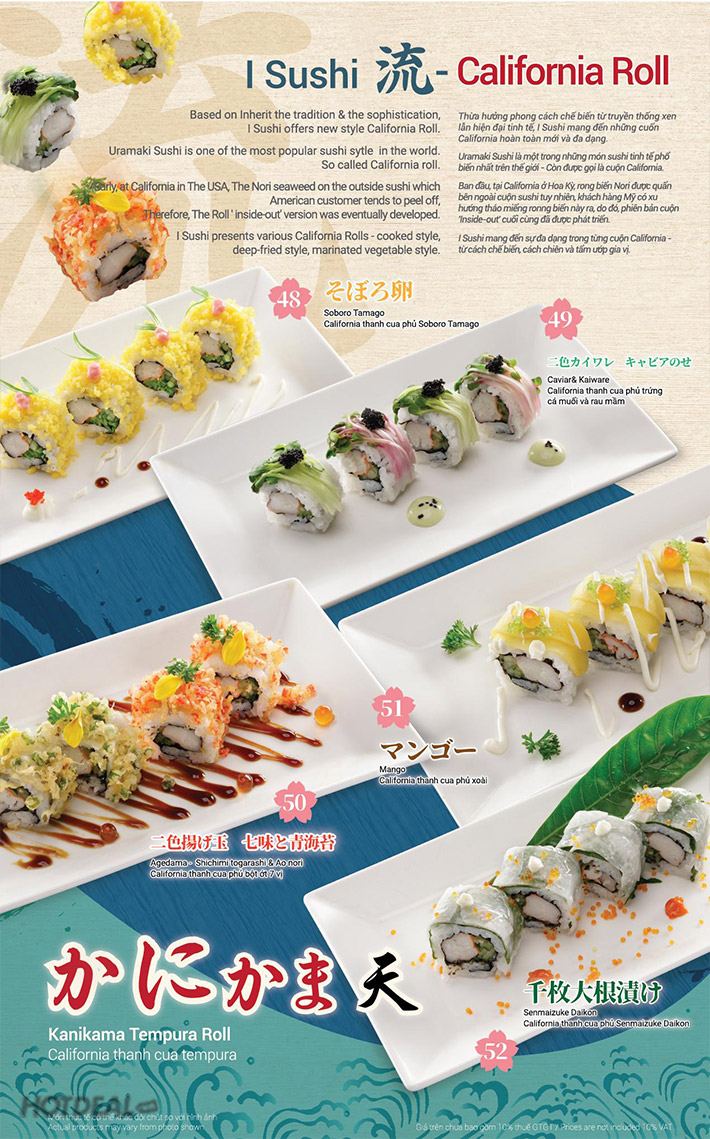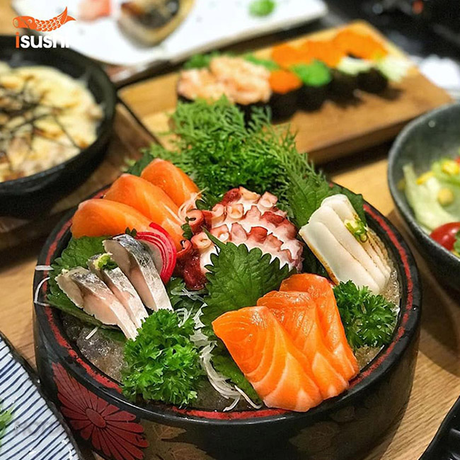 - iSushi là nhà hàng cao cấp duy nhất tại Việt Nam có sashimi tươi ăn không giới hạn, mang tới cho khách hàng những trải nghiệm & cảm xúc thực thụ về nền ẩm thực Nhật Bản.