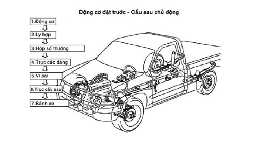 Kiểu hệ thống truyển lực FR (Động cơ đặt trước - Bánh sau chủ động)