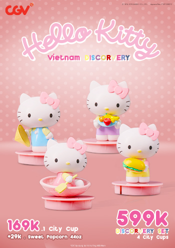 Bộ sưu tập ly nước nhân vật Hello Kitty phiên bản đặc biệt được tung ra nhân dịp kỷ niệm 45 năm sinh nhật của nhân vật được yêu thích nhất trên thế giới.Các fanHello Kitty hãy mau mau nhanh tay rinh ngay về nhé.- Độc quyền có sẵn tại CGV Việt Nam- 4 thiết kế ly mang màu sắc đặc trưng riêng của các vùng miền Việt NamChi tiết sản phẩm: + 1 City Cup (bao gồm nước): 169.000VNĐ+ 4 City Cups (bao gồm nước): 599.000VNĐ- Mua thêm 1 bắp lớn chỉ với 29k nhé