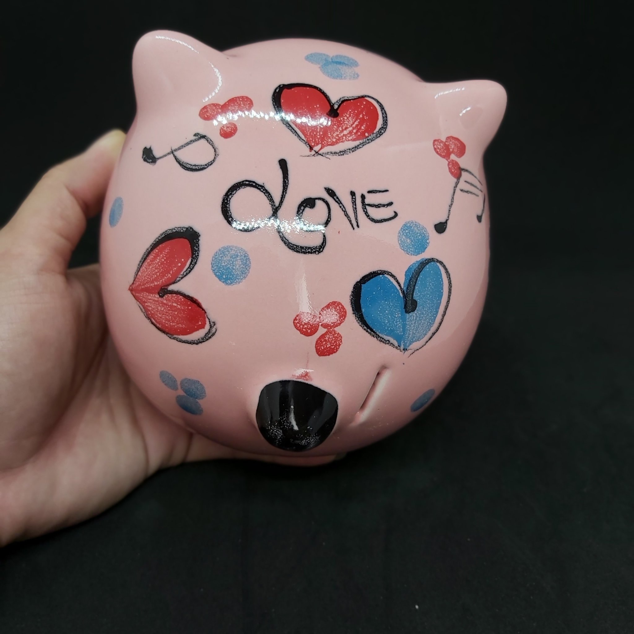 Heo đất Bát Tràng Cao Cấp Màu Hồng Khoang đen