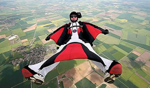 (Cadn.com.vn) - Mới đây, một tốp người hâm mộ nhảy dù, với bộ “quần áo có cánh” (QACC) đã biểu diễn nhiều tiết mục đặc sắc trên bầu trời CHLB Đức. Ở độ cao cách mặt đất 4.000m, tốp người này nhảy ra khỏi máy bay, lướt đi trong không trung với tốc độ 193km/giờ, khoảng cách giữa họ với nhau chỉ mấy cen-ti-mét.