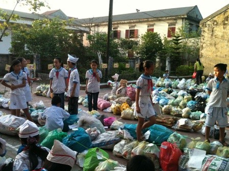 Lần đầu tiên, học sinh trường Tiểu học Đại Nài (thành phố Hà Tĩnh) tham gia một hoạt động như thế này: mang rác từ nhà đến tập trung tại nhà trường. Thoạt nhìn, thấy có vẻ kỳ quặc nhưng càng ngẫm càng thấy được ý nghĩa của nó.