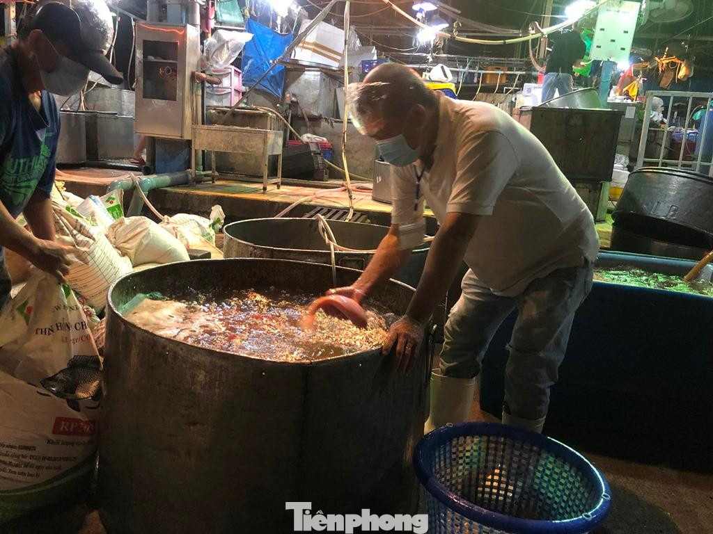 “Đêm nay chúng tôi xuống 3 tấn các loại cá điêu hồng, cá kèo… cho các mối sỉ đã đặt trước. Hàng sau khi vào chợ sẽ được phân phối cho siêu thị, cửa hàng kinh doanh hải sản. Hơn 2 tháng đóng cửa, giờ chợ mở lại, chúng tôi vừa mừng vừa... run. Vừa bán vừa nghe ngóng, kết nối các mối hàng từ từ chờ hết giãn cách” – ông Lê Tấn Mỹ, chủ vựa cá đồng Hường Thảo cho biết.