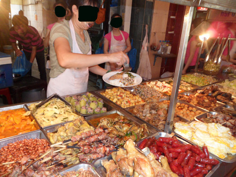 "Khuất mắt trông coi" nên tất cả các món ăn sau khi được chế biến trở nên bắt mắt và hấp dẫn khi được chủ quán bày biện tươm tất tại quầy bán hàng thế này.