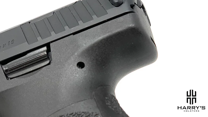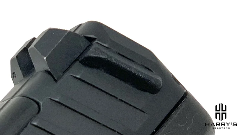 In my opinion, it might be a little bit too minimal since it’s sunk into the frame on the left-hand side of the gun, where a right-handed shooter would access it with their thumb. It’s positioned well and easy to reach with your thumb.