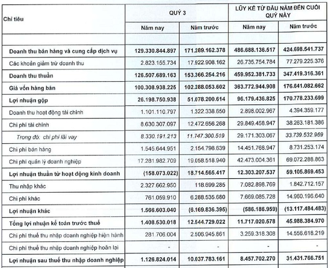 Bảng báo cáo tài chính quý 3/2020 của HQC.