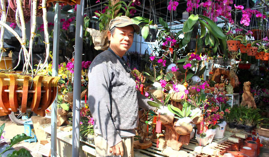 Như bao người dân có khát vọng làm giàu, anh Nguyễn Văn Tịnh (53 tuổi, trú tổ 6, P. Hòa Thọ Đông, Q. Cẩm Lệ , TP Đà Nẵng) khi lập nghiệp đã chọn nghề nuôi và bán chim cảnh để mưu sinh hơn 15 năm. Tuy nhiên, do một sự tình cờ và niềm đam mê đã "dẫn đường" cho anh thêm một hướng mới:- tạo các tác phẩm nghệ thuật độc đáo từ hoa phong lan ghép trên gỗ lũa cách đây 5 năm.