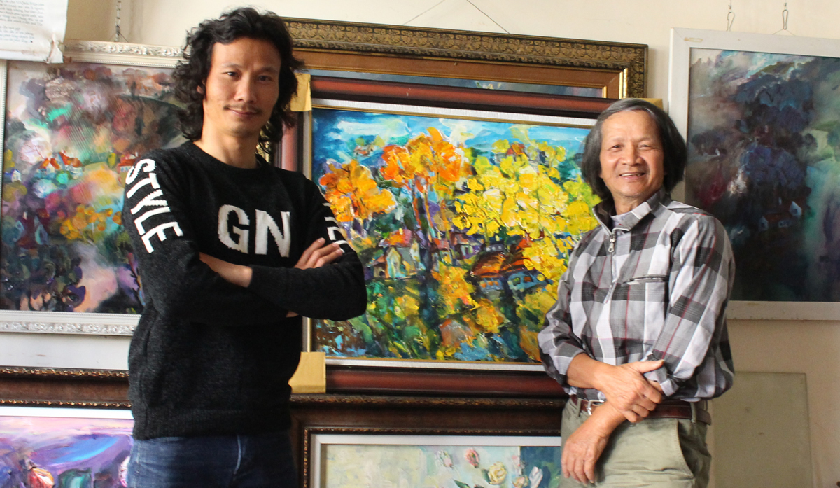 | Họa sĩ Vi Quốc Hiệp (bên phải) và tác giả bài viết. |