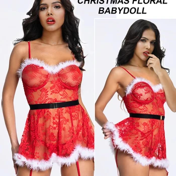 Christmas Eve Baby doll Floral Lace Sleepwear Garter Belts Erotic Lingerie Sexy Nightgowns Women's Pajamas Set Plus Size Costume 536,475 ₫ 553,697 ₫ -3% (5.0) HOT