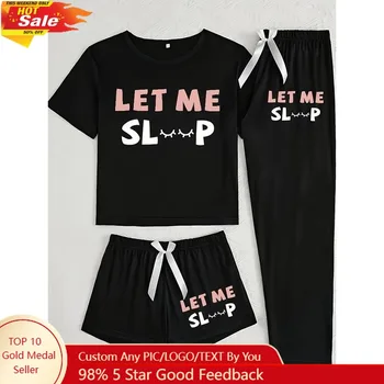 Women's Casual Letter Print Pajama Set, Three-Piece Sleepwear for All Seasons, Fitted Kint Fabric, Comfortable Nightwear 576,857 ₫ (5.0) HOT