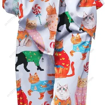 Women's Cartoon Cat Print Pajama Set, 3 Piece Sleepwear Collection, Casual Fitted Nightwear for All Seasons, Loungewear 576,857 ₫ (5.0)