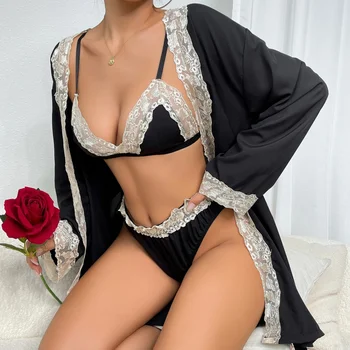 Women's Pajamas Set Robe Sexy Lingerie For Women Sex Set Bra Lace Black Butterfly Hollow Bow Thongs Домашний Костюм Sleepwear 99,145 ₫ (5.0) HOT
