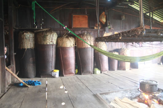 | Những bồ lúa dự trữ trong các ngôi nhà ở nóc Xơ Rơ. |
