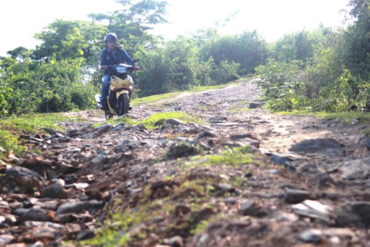 Từ đập chính thủy điện Sông Tranh 2, để vào đến nóc Xơ Rơ phải chạy hơn 1 giờ xe máy. Theo tuyến đường nhựa liên xã Trà Đốc - Trà Bui, khi đến Km20 xuất hiện một nhánh đường đất rẽ phải, chúng tôi phân vân không biết có phải đây là đường lên nóc không. Nhìn xung quanh để tìm người hỏi thì bốn bề vắng lặng, không một bóng người. Đợi một lúc, chúng tôi may mắn gặp anh Nguyễn Văn Hoa, Phó Chủ tịch Mặt trận xã Trà Bui chạy xe đến. Hỏi đường lên Xơ Rơ, Hoa bảo: “Theo em! Em cũng lên đó vận động người dân đưa học sinh đến lớp đây”. Trên đường đi, Hoa bảo: “Thời điểm này là mùa phát rẫy, người lớn trong nóc đều lên rẫy hết. Học sinh phải ở nhà đứa giữ em, đứa giữ trâu bò nên thay phiên nhau nghỉ học. Tình trạng này hiện rất đáng báo động”.