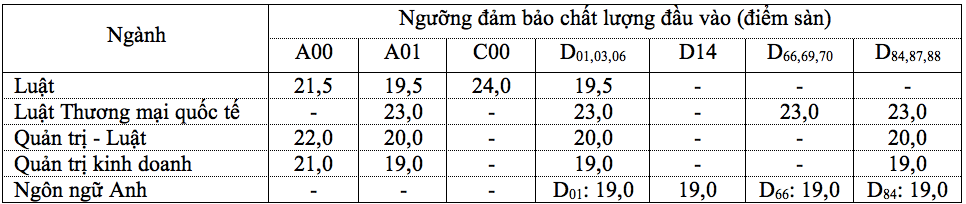 Ngày 27/8, trường ĐH Luật TP. HCM công bố ngưỡng đảm bảo chất lượng đầu vào (điểm sàn) từ điểm thi tốt nghiệp trung học phổ thông (THPT) năm 2021 để tuyển sinh các ngành đào tạo trình độ đại học hệ chính quy.