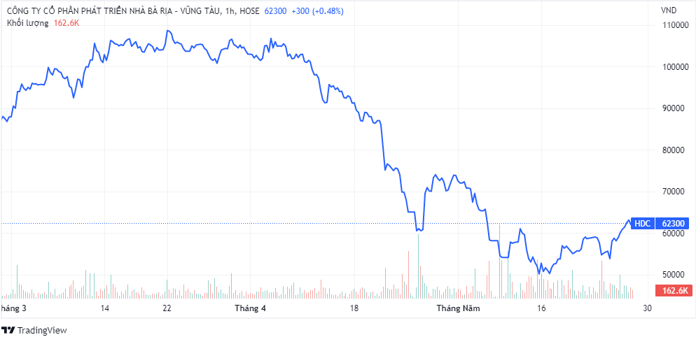 Trên thị trường chứng khoán, chốt phiên 26/5, cổ phiếu HDC đang giao dịch quanh mức 62.500 đồng/cp, giảm hơn 40% từ vùng giá đỉnh. Giá trị vốn hóa thị trường ước tính hơn 5.404 tỷ đồng.