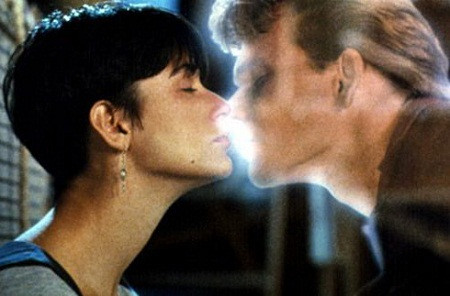Trong cảnh phim này, nhân vật nữ chính Molly Jensen (Demi Moore) đang có một nụ hôn ngọt ngào với linh hồn chưa siêu thoát của người yêu. “Ghost” là một trong những bộ phim hay nhất của lịch sử điện ảnh khắc họa tình yêu bị chia lìa bởi sinh tử.