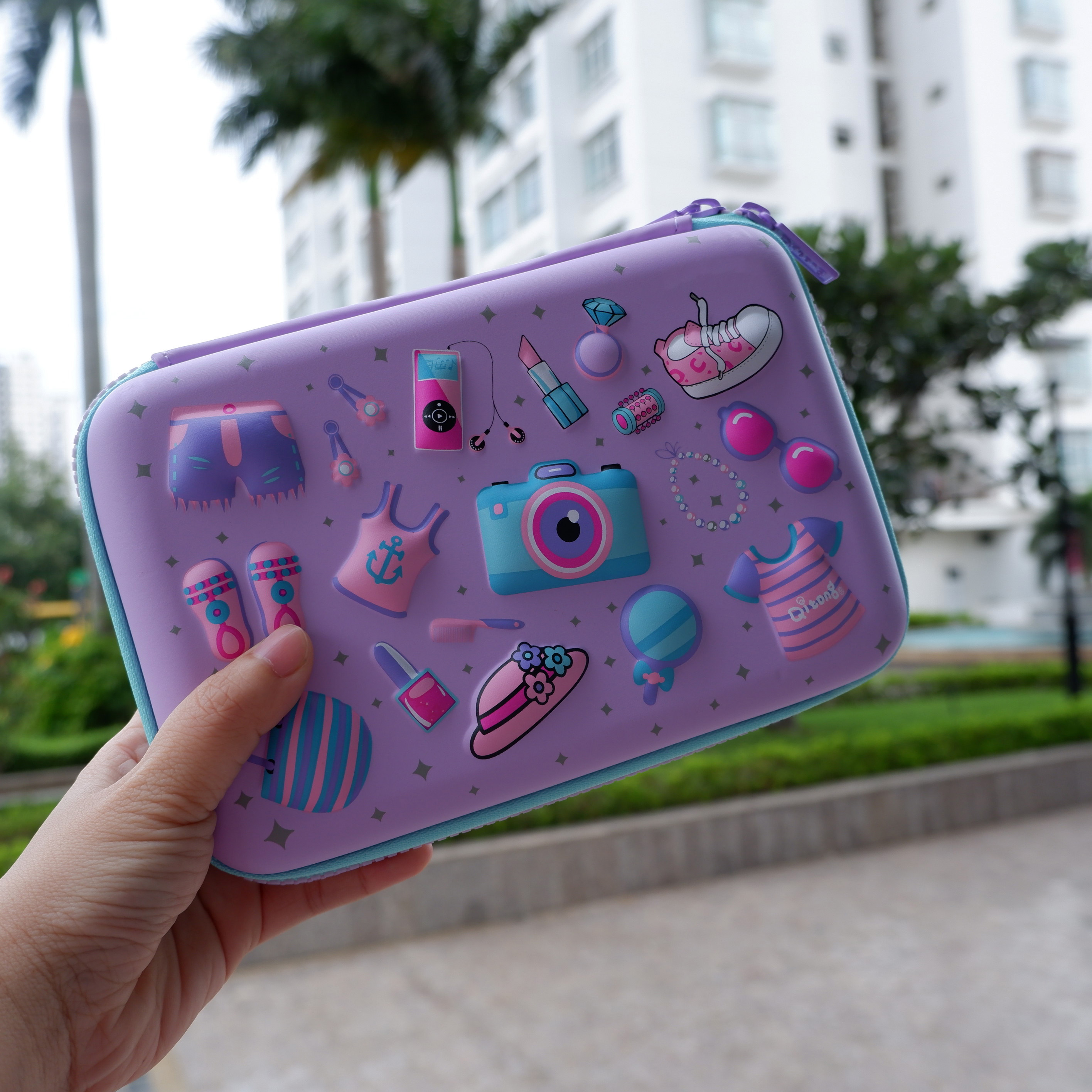 Cấu tạo khóa kéo vô cùng chắc chắn, giữ đồ đạc bên trong không bị rơi rớt ra ngoài khi di chuyển, tránh bụi bẩn, vi khuẩn xâm nhập. Hộp bút có thiết kế đơn giản nhưng sang trọng và đẹp mắt. Hộp đựng bút được làm từ chất liệu PU, in hình nổi 3D siêu nhẹ, có độ bền cao, chịu lực tốt.