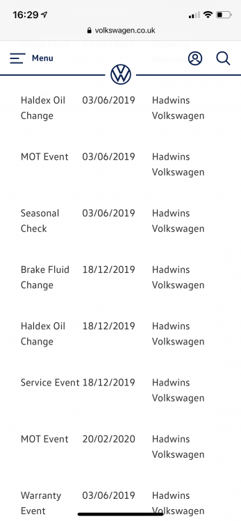 Here’s a screenshot of mine. And there’s another Haldex and brake fluid change listed 3 days after the 06/19 one!!