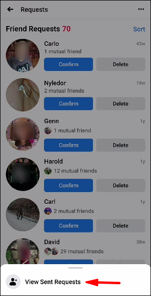 - A tab now emerges from the lower part of the screen. Tap the “View sent requests” option.