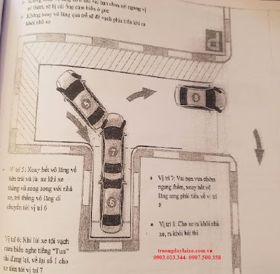 - Bước kết thúc bài thi là đánh xe ra khỏi chuồng để thực hiện bài thi tiếp theo. Bạn vào số 1, cho xe chạy chậm thẳng lên, đến khi thấy vai ngang mép chuồng thì đánh hết lái sang phải để ra khỏi chuồng.