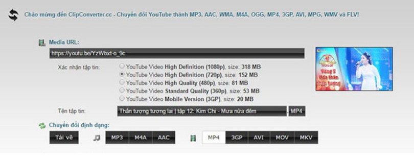 Ưu điểm của dịch vụ này không chỉ ở thao tác nhanh chóng, dễ dàng mà còn hỗ trợ người dùng chọn định dạng nhạc cũng như chất lượng video trước khi quyết định tải về.