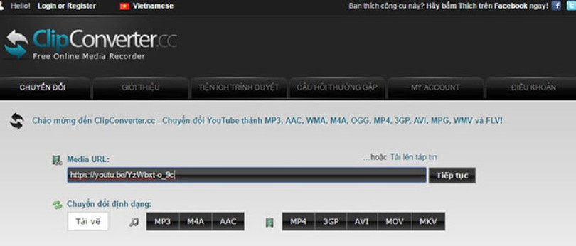 B2: Thực hiện sao chép URL video YouTube muốn cắt và dán vào hộp văn bản bên cạnh mục Media URL. Nếu như đã tải video xuống máy tính thì ClipConverter cũng hỗ trợ người dùng upload video đó lên dịch vụ để thực hiện công việc chuyển đổi.