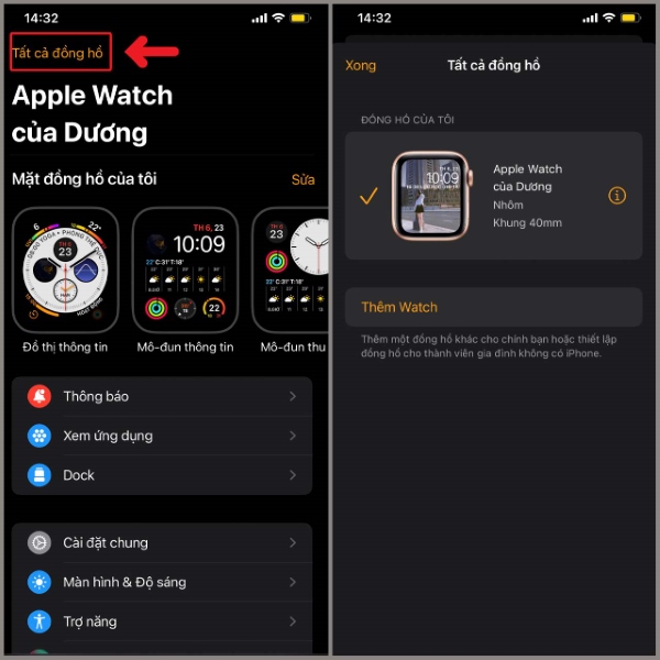 Bước 1: Trên điện thoại iPhone, bạn mở ứng dụng Watch lên > tại mục Đồng hồ của tôi, bạn chọn Tất cả đồng hồ để hiện thị danh sách Apple Watch đã được kết nối.