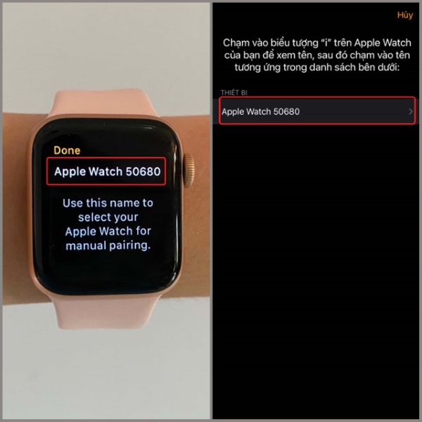 Trường hợp, người dùng gặp vấn đề trong khi ghép đôi bằng camera thì có thể thử ghép đôi bằng cách chọn Ghép đôi thủ công trên iPhone > nhấn vào biểu tượng “i” trên Apple Watch để xem tên > chọn vào tên tương ứng trong danh sách trên iPhone là được.