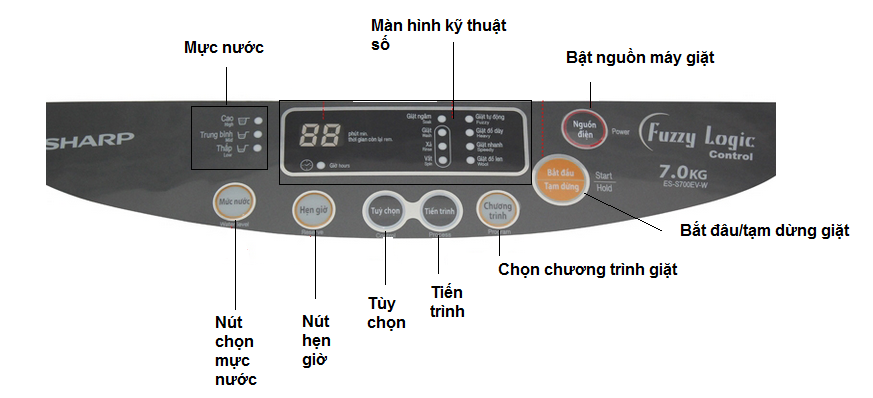 Ý nghĩa các nút trên bảng điều khiển máy giặt Sharp