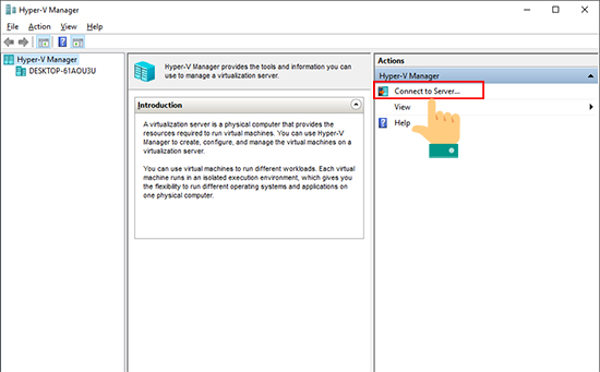 Bước 4: Ở giao diện Hyper-V Manager, bạn chọn Connect to Server…