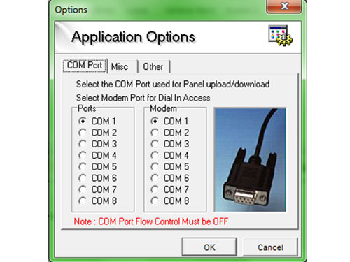 Vào File->Options để chọn cổng kết nối phù hợp với máy tính, với máy tính chúng ta thì chọn cổng COM nhé ->OK.