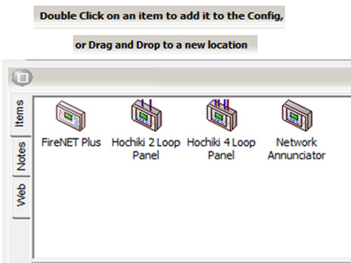 Nhìn dưới màn hình có một cái bảng cho chúng ta chọn cấu hình của tủ (FireNet Plus hoặc Hochiki 2 loop Panel, Hochiki 4 loop panel, Network Annundator).