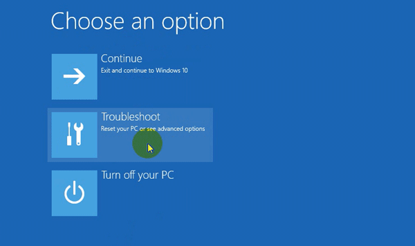 Máy tính sẽ chuyển tới màn hình như bên dưới, bạn chọn Troubleshot