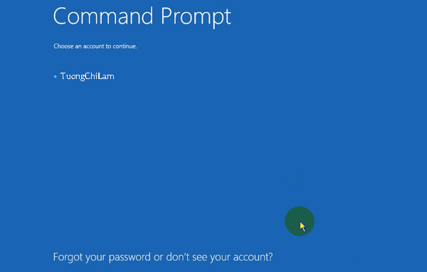 Tại màn hình Command Prompt, bạn sẽ thấy tài khoản của bạn đang có trên máy, bạn click chuột vào tài khoản mà hiện bạn đang sử dụng