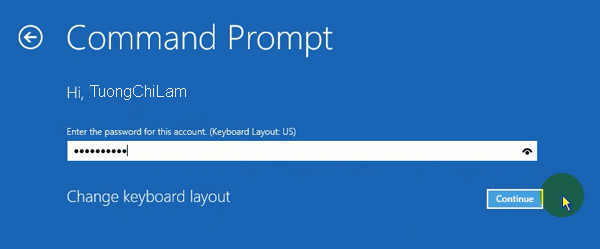 Nếu tài khoản bạn chọn có mật khẩu thì bạn điền vào, nếu không có thì bỏ trống phần mật khẩu, sau đó chọn Continue
