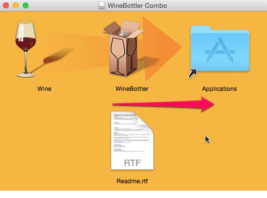Dùng chuột kéo icon WinBottler vào thư mục Applications
