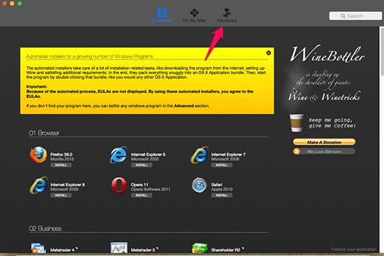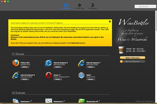 Để có thể chạy được ứng dụng Windows trên Mac OS chúng ta cần sử dụng thông qua một phần mềm có tên WinBottler.