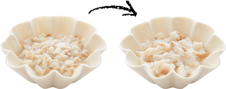 Vớt thịt gà đã chín ra, dùng chày/dĩa để giã/xé thịt gà sao cho độ thô thích hợp với khả năng ăn thô của bé.
