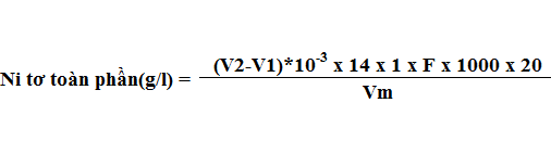 - Hàm lượng Ni tơ toàn phần được tính theo Công thức sau: