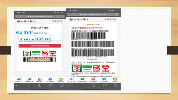 - Các bạn nhấn vào link bên dưới sẽ xuất hiện các mã vạch khi đó các bạn chỉ cần cẩm ra các cửa hàng tiện lợi như 7-11, Family, hoặc các cửa hàng tiện lợi khác để quét mã và thanh toán là được.
