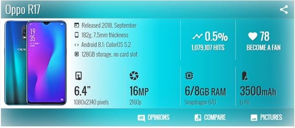 8. SIÊU PHẨM OPPO R17 CAO CẤP SANG TRỌNG CẤU HÌNH KHỦNG PIN TRÂU CHỈ VỚI 3000 KUAI