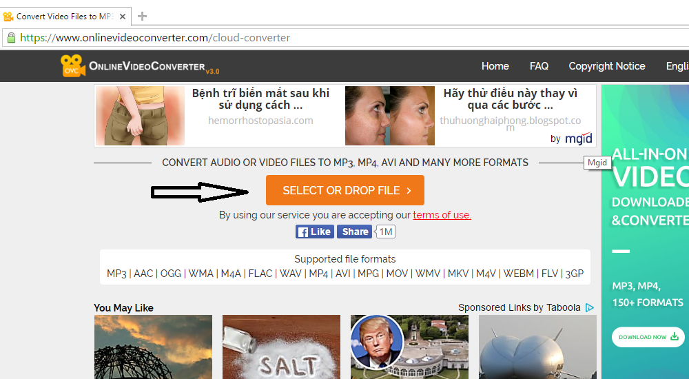 Bước 1: Truy cập vào địa chỉ Link. Sau đó nhấn vào nút SELECT OR DROP FILE >.