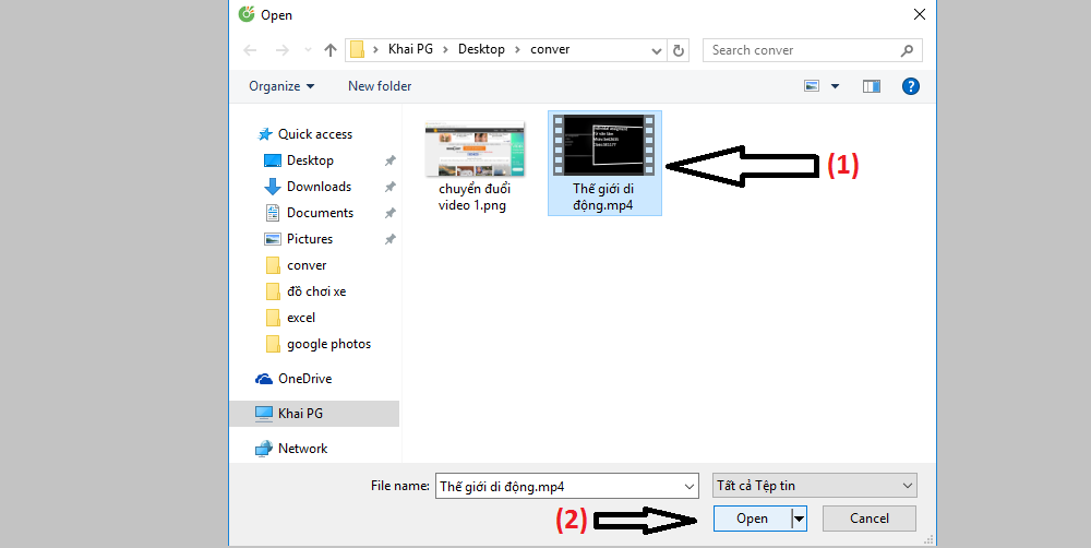 Bước 2: Ở cửa sổ hiện ra, bạn tìm đến file video mà bạn muốn chuyển đổi định dạng và nhấn nút Open.