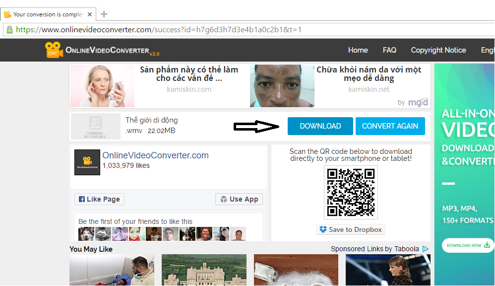 Bước 5: Cuối cùng sau khi chuyển chuyển video MP4 thành WMV trực tuyến xong, nhấn vào nút DOWNLOAD để tải video đã chuyển video MP4 thành WMV trực tuyến về máy.