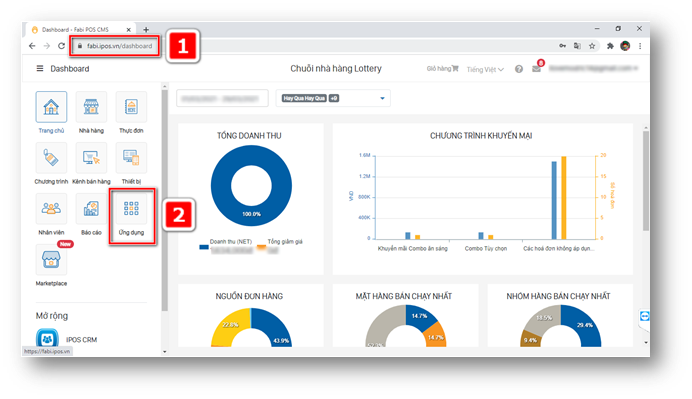 - Để đăng nhập được vào trang iPOS CRM, Khách hàng cần đăng nhập vào trang web fabi.ipos.vn trước. Sau đó chọn mục “Ứng dụng”