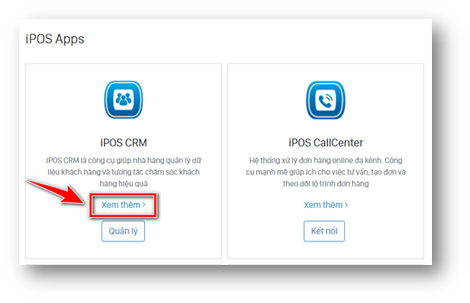 - Chọn “Xem thêm” ở ứng dụng “iPOS CRM”