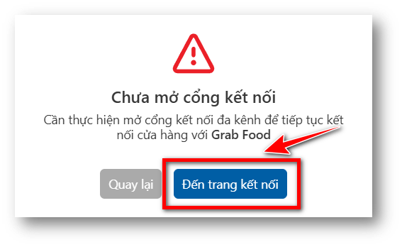 Trường hợp bạn chưa mở cổng kết nối, thì sẽ có một thông báo như sau -> ấn vào “Đến trang kết nối”
